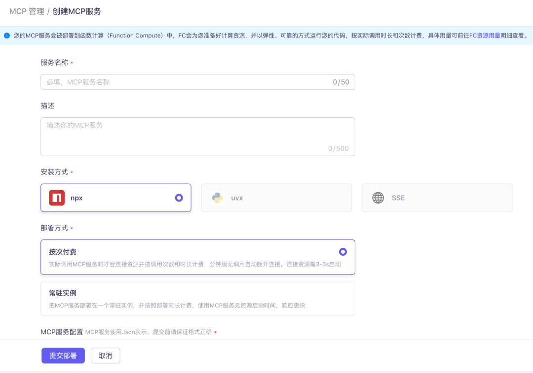 npx 安装 或 Python 脚本(Python 暂还是灰的)bailian.console.aliyun.com/?tab=app#/mcp-manage/create