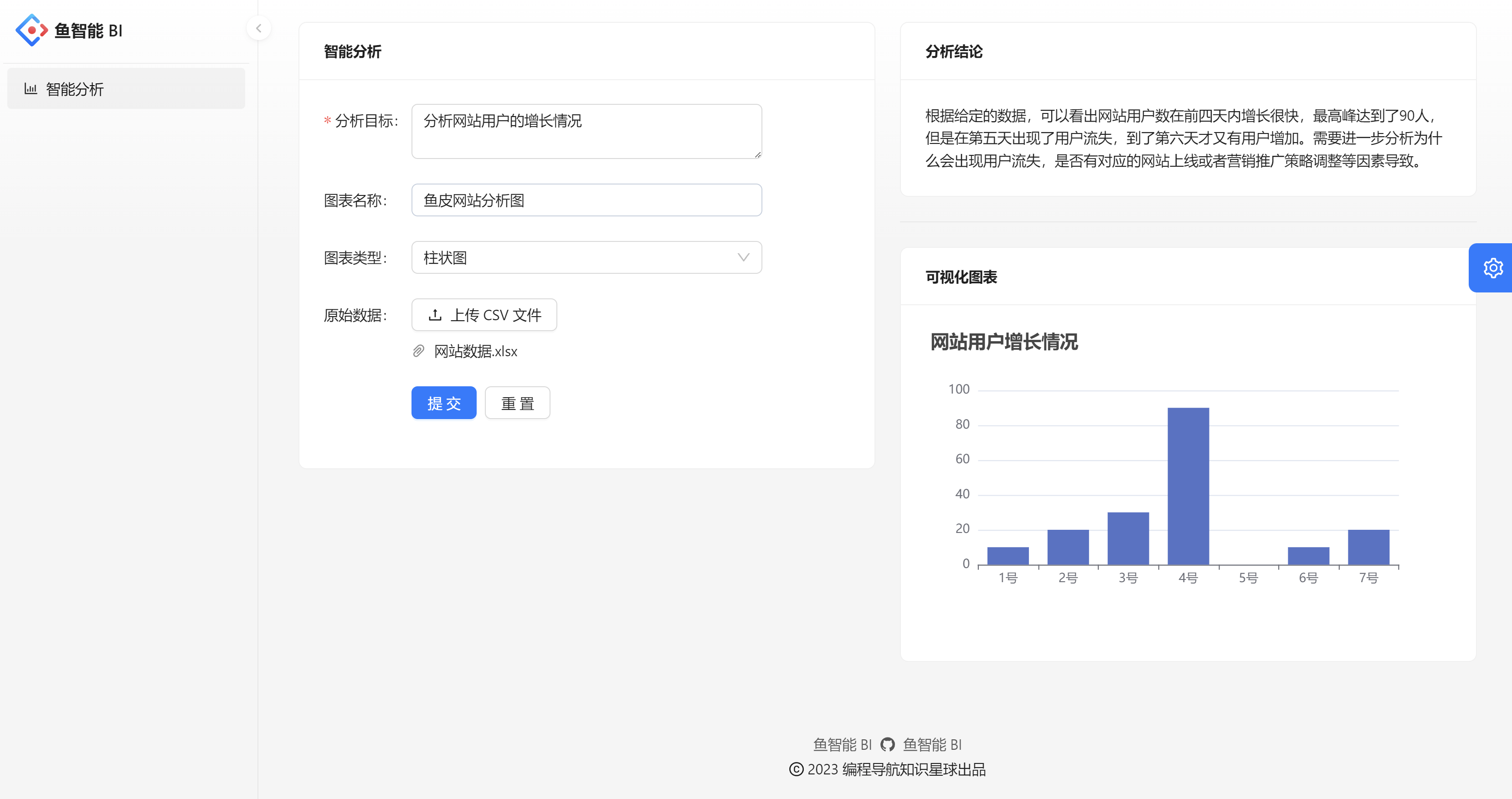 基于 Spring Boot + React 的智能 BI 数据分析平台,学习实践异步化、线程池、RabbitMQ 消息队列、AI 应用开发、AIGC Prompt 优化等技术。用户可以上传数据,AI 自动生成分析报告和图表。