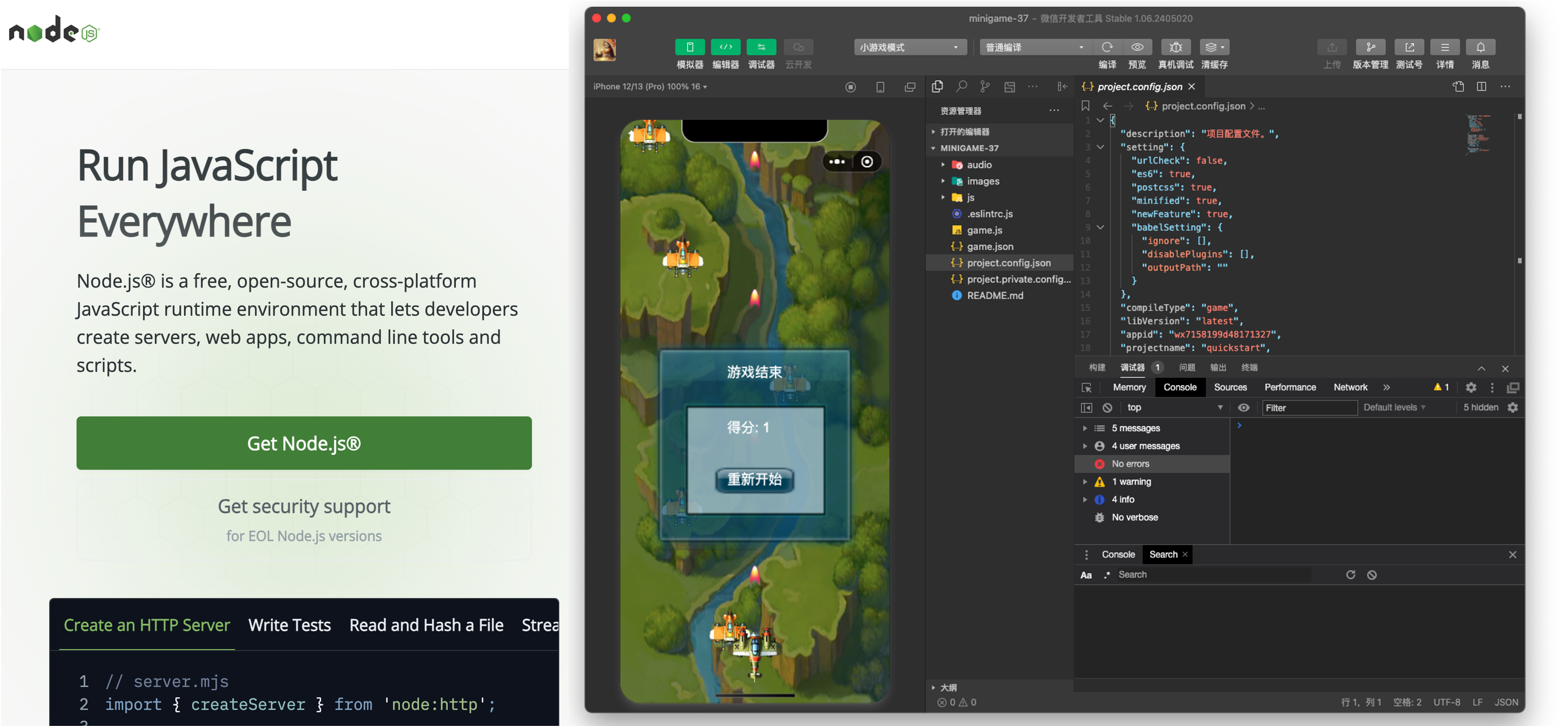 此外,既然要开发前端项目,肯定少不了 Node.js 环境;既然要开发微信小程序,肯定少不了 微信开发者工具,直接去对应的官网下载安装就好。