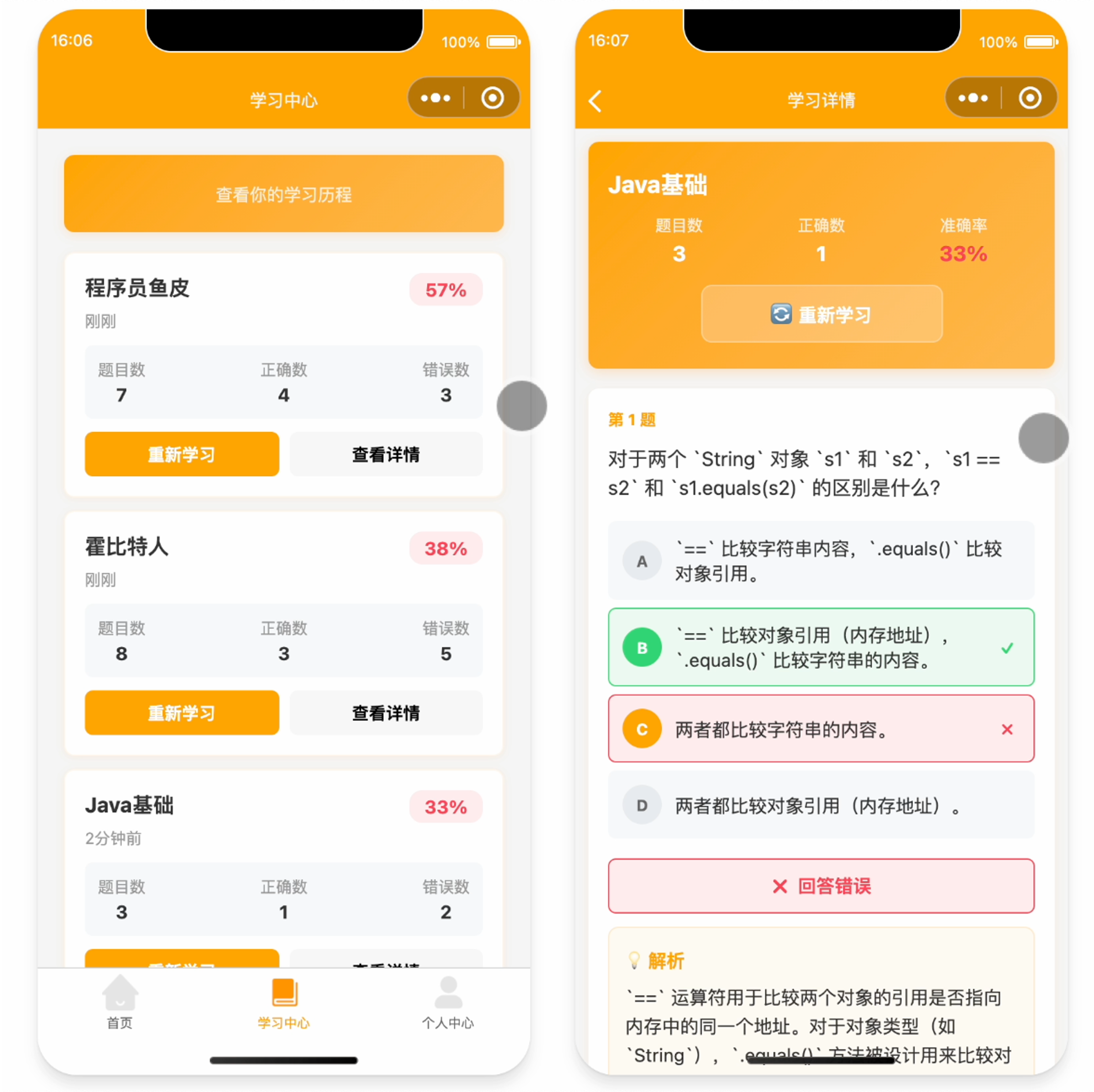 你还可以查看自己的学习记录,重新学习或者查看题解。